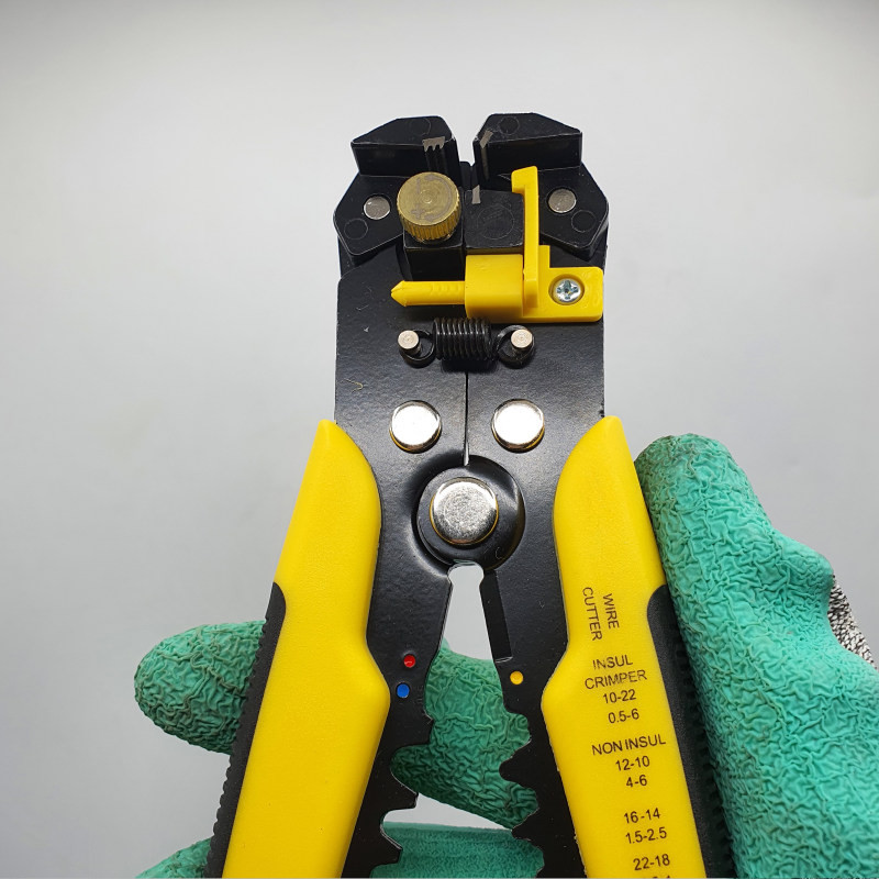 سیم لخت کن اتوماتیک، مدلی فشار قوی و با کیفیت است. بدنه این سیم لخت کن از فولاد مخصوص ابزار و آلیاژ کروم وانادیوم با روش forging برای ایجاد مقاومت بسیار بالا در برابر فشار ساخته شده است و دستهها از پلاستیک دو جزئی با ضخامت بالا ساخته شدهاند تا در هنگام کارهای طولانیمدت به جلوگیری از خستگی و تعریق دست کمک کند. این انبر سیم لخت کن اتوماتیک دارای طراحی ارگونومیک و مهندسی شده است و قابلیت تنظیم دقیق طول لخت کردن سیم را دارد و پیچ تنطیم فشار فک بر سیم بر روی آن تعبیه شده است. همچنین برای ممانعت از آسیب به فکها، از فنر مقاوم فولادی در آن استفاده شده که باعث عمر طولانی این انبر میشود، همچنین این انبر سیم لخت کن در انتهای فک مجهز به سیم چین بسیار باکیفیت برای برش سیمهای مسی و آلومینیومی به قطر 6-0.5 میلیمتر است و قابلیت پرس سر سیم بر روی دسته محصول را نیز دارد. |