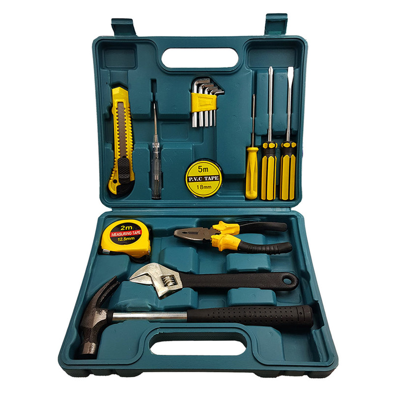 اقلام مجموعه ابزار عبارت از یک عدد آچار فرانسه -یک عدد چکش فلزی-یک عدد انبر دست-یک عدد متر دو متری-یک عدد موکت بر-یک عدد لنت-یک عدد پیچ گوشتی دو سو-یک عدد فاز متر دو سو