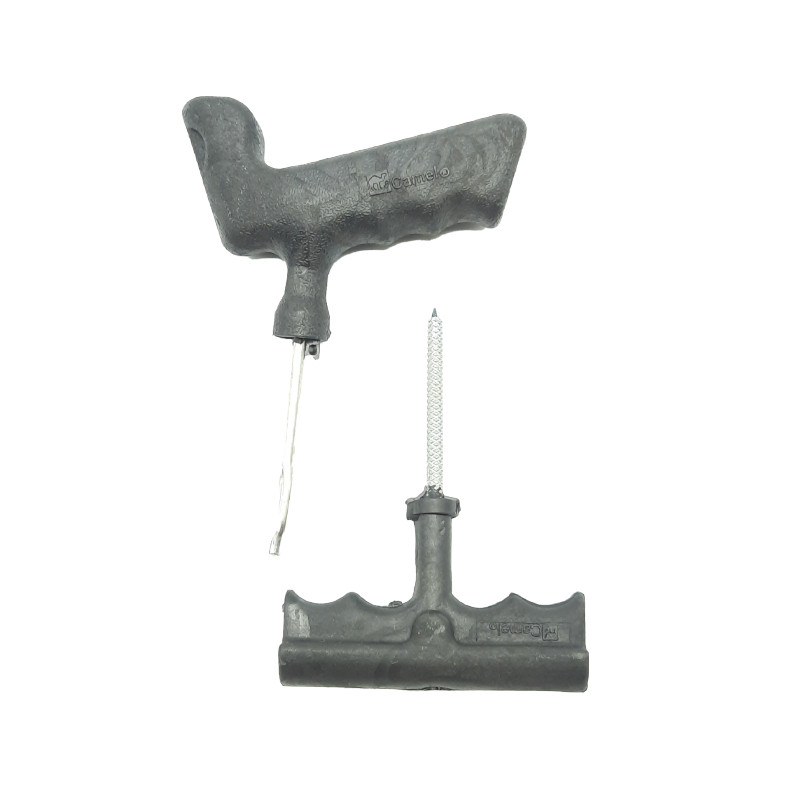 این محصول شامل یک عدد درفش با دسته پلاستیکی جهت جا زدن نخ پنچرگیری و یک عدد سوهان با دسته پلاستیکی جهت سمباده زدن سوراخ لاستیک است مناسب جهت کلید خودروها با لاستیک تیوپلس کیفیت ساخت بالا |